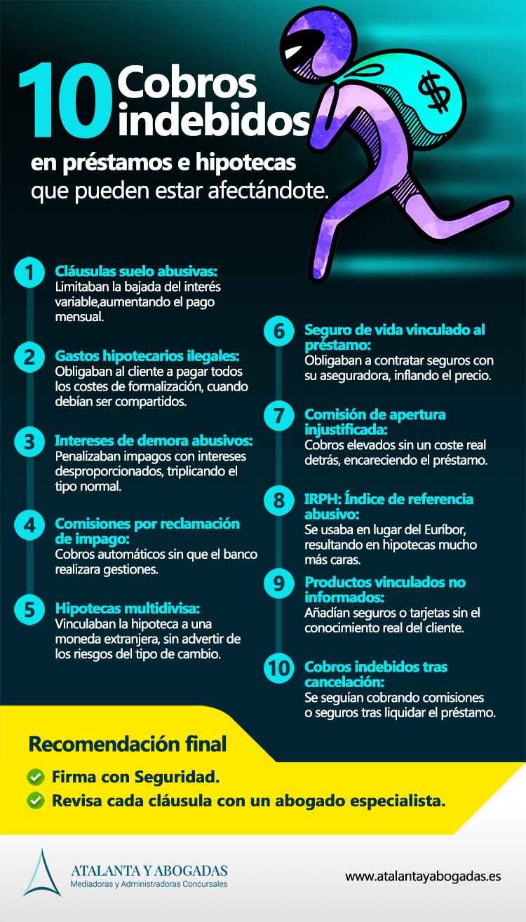 Infografía sobre cómo identificar y reclamar cobros indebidos en préstamos e hipotecas